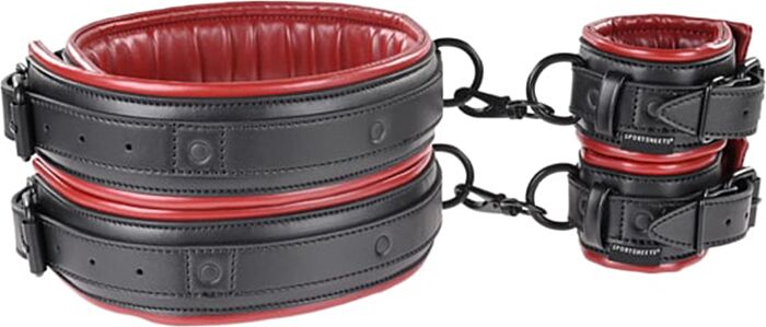 Conjunto de duas algemas que ligam coxa e pulso, pensadas para jogos BDSM confortáveis e versáteis. Almofadadas e ajustáveis com sistema tipo cinto e fivela de bloqueio, permitem várias posições sem sacrificar o conforto. Boa escolha para quem procura reduzir mobilidade com segurança e estilo; adequadas para principiantes e praticantes intermédios que valorizam discrição e qualidade.