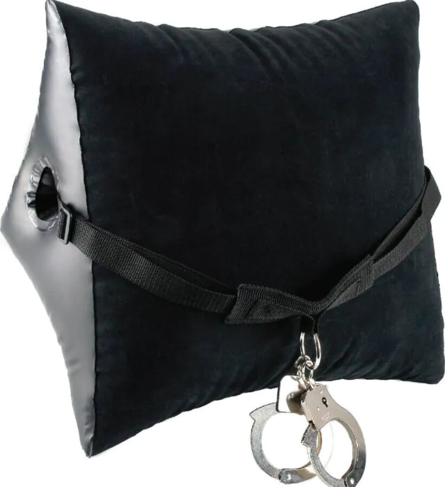 Com uma configuração que combina conforto e prazer, esta almofada inflável possibilita a exploração de posições diferentes enquanto o parceiro está seguro e confortável. O seu centro oco permite ancorar uma correia resistente que conecta a esposas de metal, proporcionando uma experiência de restrição suave e estimulante.