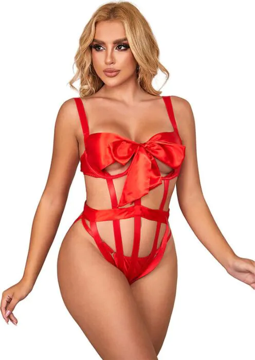 Bodystocking SUBBLIME Body Sexy Calado com Laço Vermelho