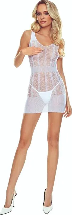 Bodystocking PASSION BS113 com encaje branco e conforto
