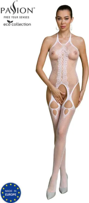 Conforto e sensualidade numa bodystocking adaptável à forma do corpo. A coleção Eco da Passion introduz a lingerie erótica fabricada com materiais reciclados, oferecendo uma experiência única que combina estilo e preocupação ambiental. Este bodystocking é confeccionado com 83% de nylon regenerado ECONYL e 17% de elastano degradável ROICA™ V550, dando-lhe uma qualidade superior.
