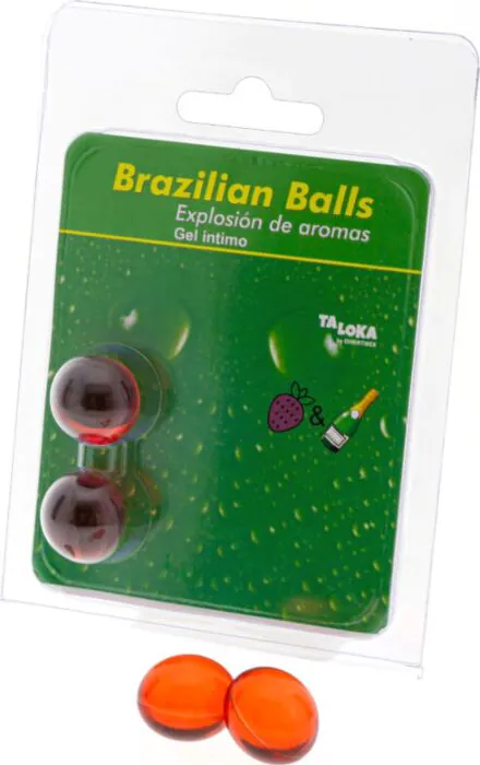 Duas bolas brasileiras com lubrificante para uma explosão de prazer. Com aroma a fresas e champanhe, são ideais para massagem e momentos especiais.
