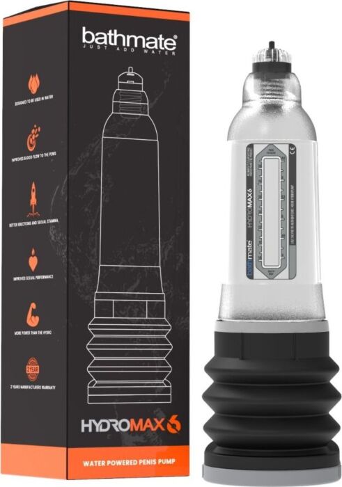 A Hydromax6 é uma bomba para pénis pensada para quem tem o pénis entre 10–15 cm em ereção e quer um sistema de água mais potente e confortável. Usa o poder da água para aumentar comprimento e circunferência, tem selo macio que protege a base e válvula Super Flow para encher com uma mão no duche. Sessões até 15 minutos por dia.