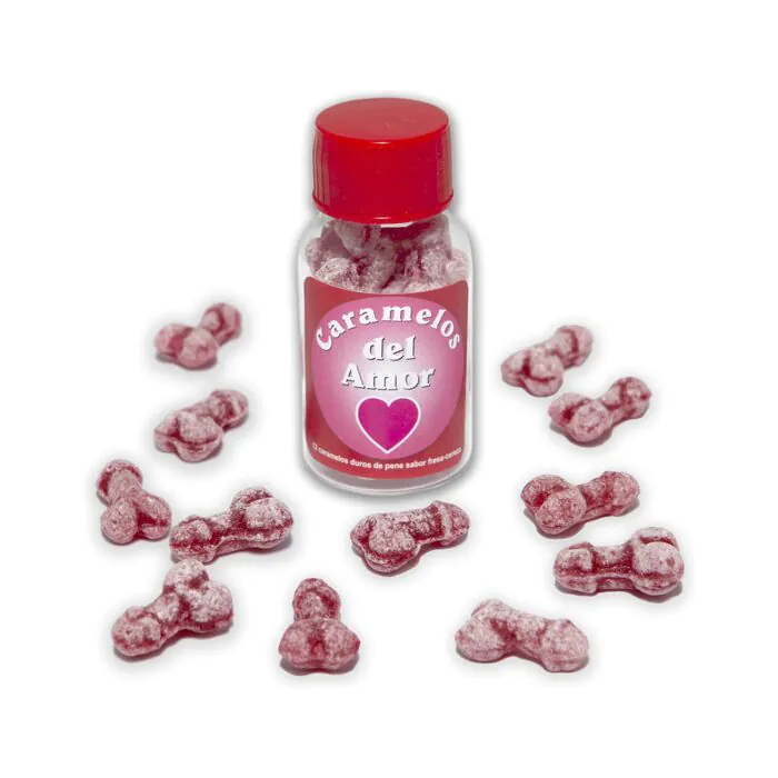 Descubra o prazer em cada mordida com o Frasco de 12 Caramelos de Pénis do Amor de Sabor Morango-Cereja, uma delícia irresistível que despertará todos os seus sentidos. Fabricados em Espanha por uma prestigiada empresa, estes caramelos de 25 gramas cada estão projetados em forma de pénis e têm uma cor vermelha intensa que seduzirá o seu paladar desde o primeiro momento.