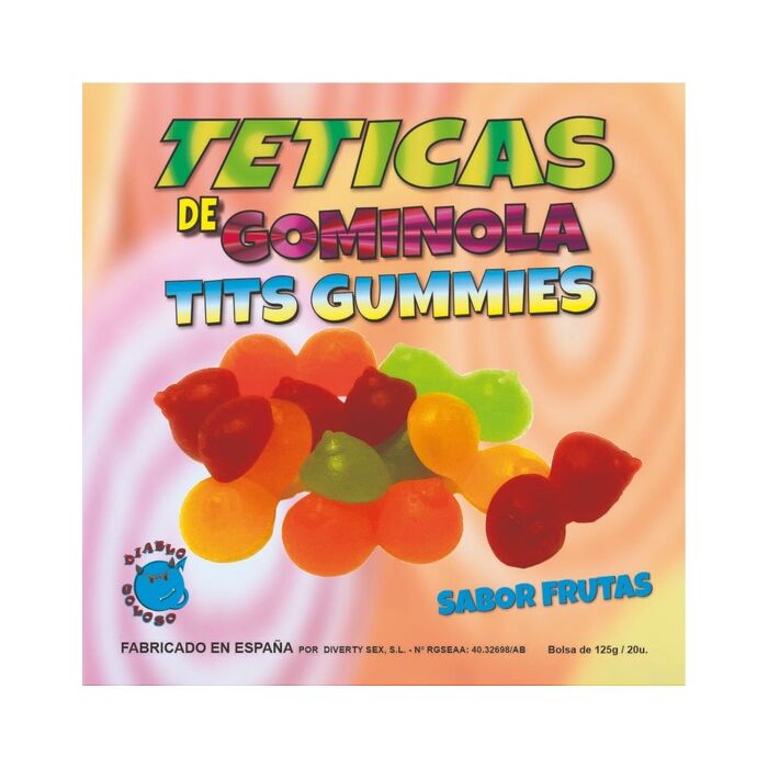 Descubra a divertida e atrevida diversão com a "Caixa de gomas de maminhas com brilho sabor frutas 6 cores e sabores made in Spain" da Loviux!