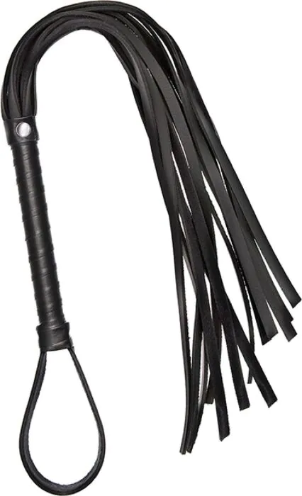 Chicote de bondage com 13 tiras em poliuretano revestido com pele sintética e cabo longo e fino com correia para segurar. Recomendado para quem procura um flogger elegante e fácil de manusear para jogos em casal; oferece impacto controlado, mais sensual do que contundente.
