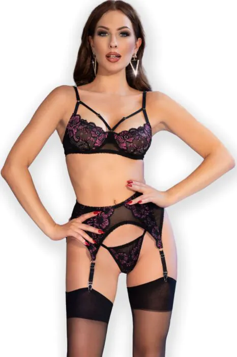 O conjunto de lingerie CR 4693 oferece um toque de sofisticação e charme que se destaca. Feito em material elástico e suave, proporciona comodidade ao longo do dia, permitindo liberdade de movimento. Ideal para quem valoriza não só a estética, mas também o conforto, este conjunto inclui um sujetador ajustável, liguero, tanga e meias.