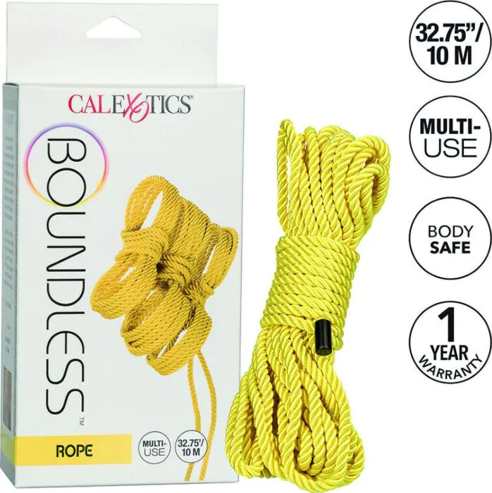 A Corda Boundless da CALEXOTICS transforma o BDSM em arte, unindo corpos de forma criativa. Indicado para quem quer explorar a restrição de maneira segura e estilosa.