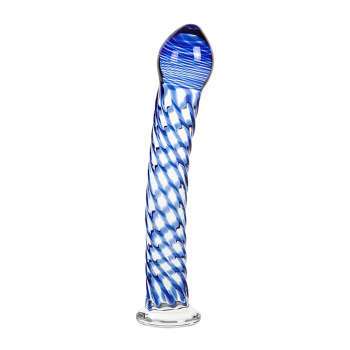 AQUARIUS é um dildo de vidro com eixo semi-curvo e relevos em espiral pensado para estimulação anal e vaginal. Tem 180 mm de comprimento insertável, base plana para bom agarre e detalhes azuis que lhe dão um aspeto delicado. Recomendado a quem procura um brinquedo rígido, fácil de limpar e que permita brincar com a temperatura.