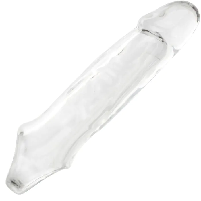 Funda peniana transparente da CALEXOTICS que acrescenta comprimento e espessura com uma cabeça ultra macia para sensação mais realista. Tem eixo oco e correia escrotal para fixar durante a relação. Uma opção prática para casais e quem quer dar confiança extra sem aparelhos eléctricos — disponível na nossa loja erótica online para prazer íntimo com entrega discreta.