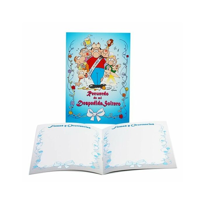 ¡O Livro Assinaturas Despedida de Solteiro é o cúmplice perfeito para imortalizar a tua despedida de solteiro! Com o seu design descontraído e frases originais, este livro ilustrado permitir-te-á reviver cada momento selvagem e emocionante dessa noite tão especial. Deixa os teus amigos plasmarem as suas mensagens mais loucas e dedicatórias nas suas páginas, criando um tesouro cheio de risos e boas memórias. Compacto e cheio de magia, é o complemento ideal para recordar uma das noites mais memoráveis da tua vida! Torna a tua despedida um evento inesquecível e conserva cada emoção neste livro que será testemunha da tua última grande festa antes do "sim, aceito"!