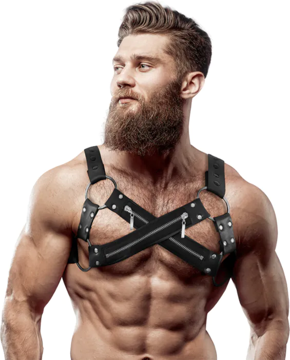 Realça a tua figura com este arnés ajustável em couro vegano. Perfeito para quem quer marcar presença de forma ousada e elegante.