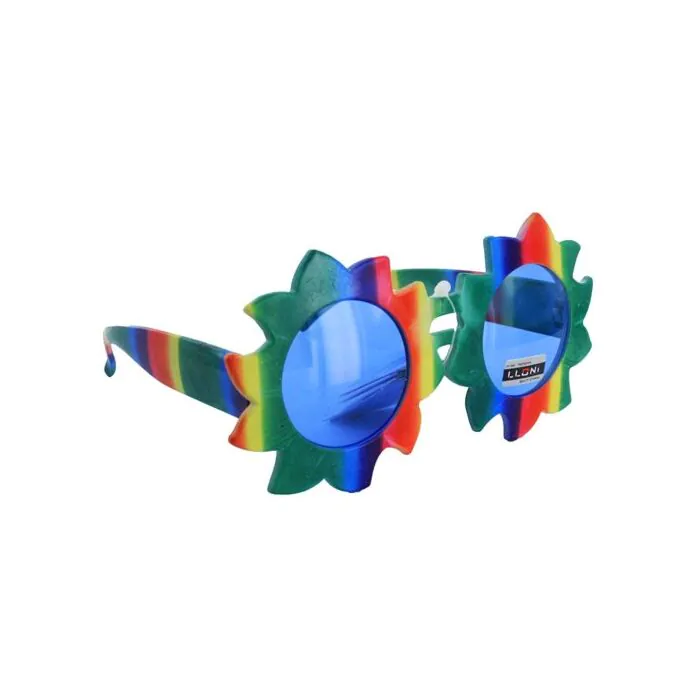 flores fantásticas - em forma de óculos com as cores da bandeira do orgulho LGBT. Eles têm filtro UV para proteger os olhos.