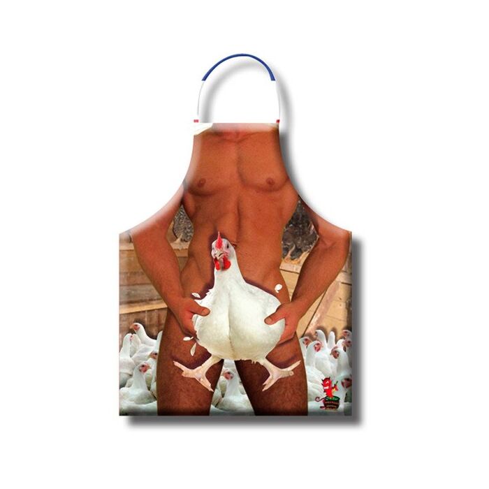 Com ilustrações e imagens eróticas de uma galinha muito traquina, este avental é ideal para surpreender em despedidas de solteiro/a, festas temáticas ou simplesmente para animar o teu dia a dia na cozinha. Imagina a cara dos teus amigos quando te virem a usar este avental original!