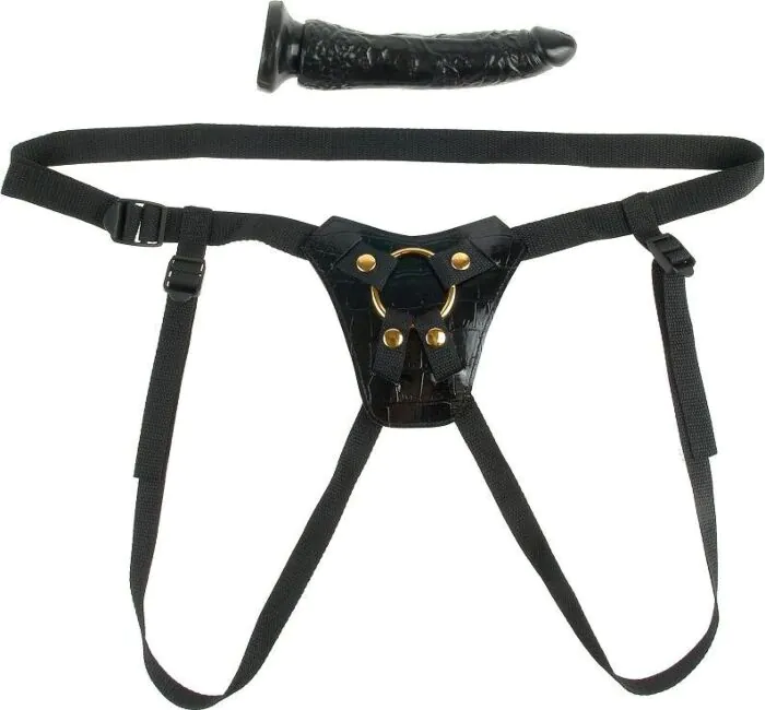O Arnês Fetish Fantasy Gold é uma opção sólida para quem está a começar em jogos de arnés. O ajuste elástico permite uma boa adaptação a diferentes corpos, mas o material pode não ser tão respirável quanto opções em tecido. Nível: iniciantes.