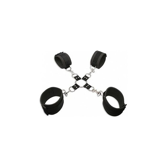 Os punhos e tornozelos em neopreno unem-se num anel central, permitindo-lhe imobilizar o seu parceiro de forma confortável e segura. Esqueça as técnicas complicadas de amarração e nós difíceis, com este kit tudo é simples e prático. Basta colocar as ataduras nos pulsos e tornozelos do seu amante, ajustá-las com o velcro e está pronto para desfrutar de uma experiência única!