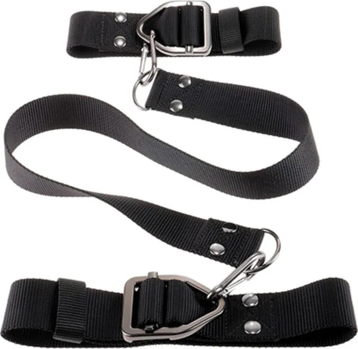 Experimente o prazer da restrição com o SR Command Deluxe Cuff Set. Este kit permite fixar simultaneamente pulsos e tornozelos, proporcionando uma sensação de segurança e excitação. As tiras são feitas de nylon de resistência industrial, garantindo robustez e durabilidade, enquanto os mosquetões de aço inoxidável oferecem uma fixação confiável.