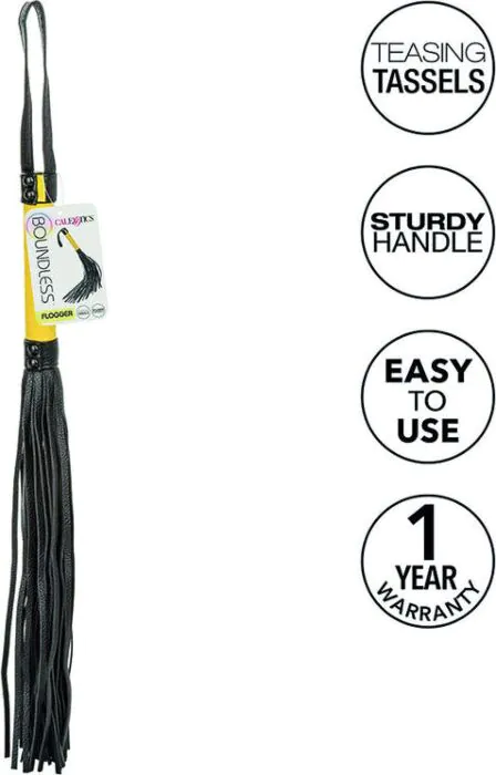 Aproveita cada toque divertido e excitante do Boundless Flogger, feito em couro vegano e com um mango texturizado resistente que proporciona um excelente controlo. Com borlas suaves a satisfazer os teus desejos mais travessos, este látigo é desenhado para quem se quer aventurar no prazer e na sensualidade.