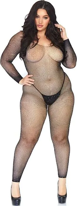 Bodystocking em rede Leg Avenue (tamanho 1X-2X) pensado para quem quer um look sedutor sem perder conforto. A malha elástica assenta bem em formas curvilíneas e os brilhantes adicionam um toque sofisticado. Peça fácil de vestir, pensada para uso pontual em ocasiões íntimas ou sessões fotográficas em loja erótica online.