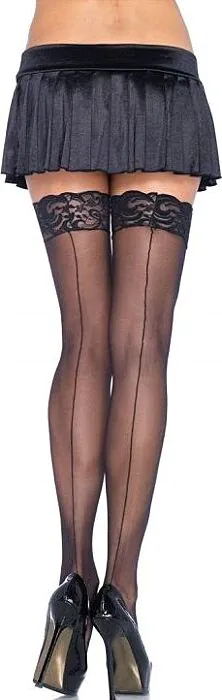 Realce as tuas pernas com estas meias que oferecem um toque sexy e sofisticado. Com uma costura clássica na parte de trás e detalhe em renda na parte superior, são as favoritas dos mais fetichistas. 100% polyamida para um conforto sem igual.