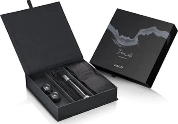 Desperte suas fantasias com o Kit Dare Me da Lelo. Inclui o Chicote Sensua, Algemas de seda e as Luna Beads Noir, perfeitas para uma experiência sensual.