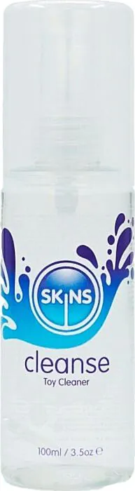 Spray de limpeza para brinquedos eróticos SKINS (100 ml): fórmula leve, não pegajosa e antiaderente para limpar vibradores e outros brinquedos entre usos. Perfeito para quem quer uma solução prática na nossa loja erótica online e valoriza higiene sem resíduos. Produto fácil de usar e de transportar.