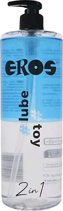 O Eros 2 em 1 Lube Toy é um lubrificante à base de água pensado para quem quer lubrificação mais duradoura sem complicações. Vem num frasco volumoso de 1000 ml com doseador anti-gotas, o que facilita aplicar a quantidade certa sem desperdício — um ponto a favor se usas brinquedos eróticos ou vibradores com frequência ou se geres uma loja erótica online.