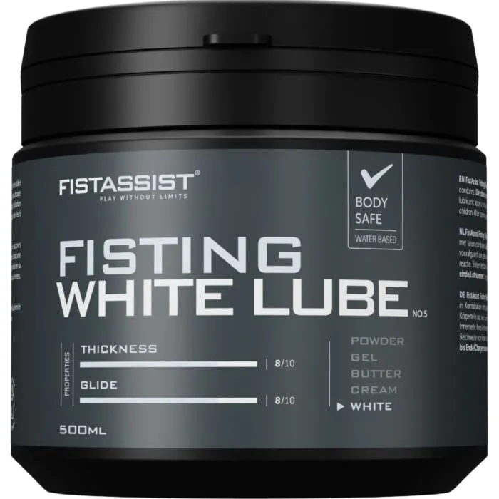 Gel branco extraespesso à base de água pensado para fisting e jogos com forte componente visual. A textura cremosa adere à pele como segunda pele, não fica líquida nem pegajosa, e oferece deslizamento prolongado. Compatível com preservativos, látex e brinquedos, indicado para quem procura impacto visual e sensações acolchoadas; não indicado para quem prefere lubrificantes oleosos.