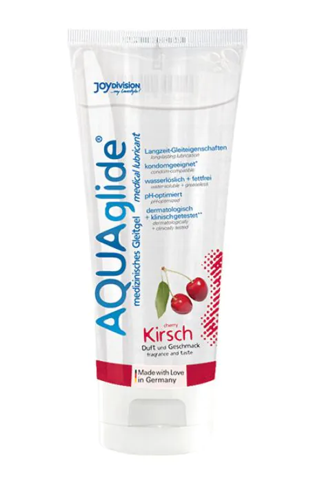 O AQUAGLIDE Cherry 100 ml é um lubrificante medicinal de alta qualidade pensado para uso íntimo e também para complementar o uso de brinquedos eróticos. Tem excelentes propriedades deslizantes de larga duração, é compatível com preservativos e foi clinicamente testado para compatibilidade dermatológica — tudo isso numa fórmula à base de água com aroma a framboesa e sabor a cereja. É solúvel em água, livre de gorduras, não mancha e é fácil de eliminar após o uso.