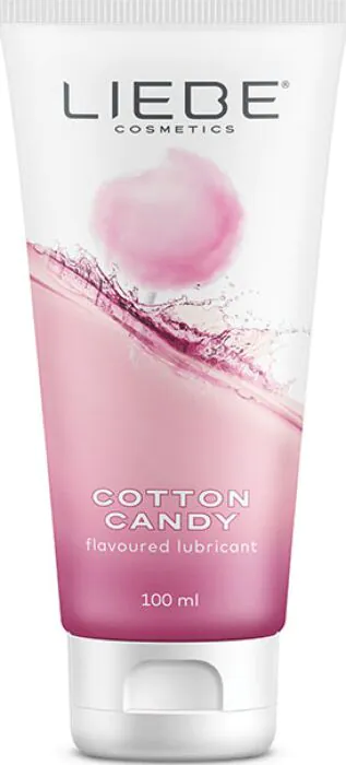 Lubrificante à base de água Liebe Cotton Candy, com sabor intenso a algodão-doce e completamente comestível. Não contém açúcar, glúten nem parabenos; é fluido, não pegajoso e compatível com preservativos e brinquedos eróticos. Perfeito para quem quer um lubrificante agradável ao paladar para sexo oral e para melhorar o deslizamento na penetração vaginal ou anal.