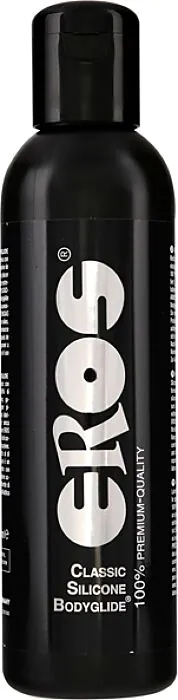 O EROS CLASSIC Silicone Bodyglide é um lubrificante à base de silicone concebido para quem quer que o deslize dure mais tempo sem secar nem ficar pegajoso. Em loja digo-te: funciona muito bem em relações prolongadas e massagens íntimas porque a película de silicone mantém a humidade e a sensaçã o sedosa na pele. É neutro ao gosto, incolor e inodoro, o que o torna discreto para usar oralmente ou em contextos onde não queres aromas.