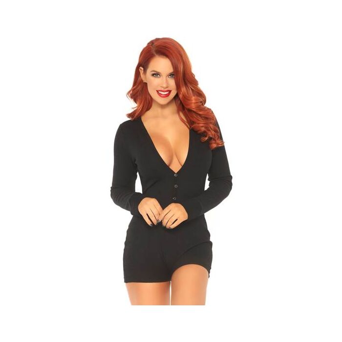Macacão de manga comprida com abertura nas costas - preto