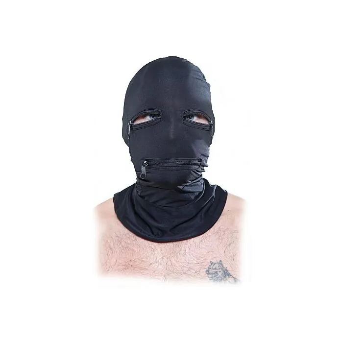 FETISH FANTASY ZIPPER FACE es una máscara elástica con aberturas en los ojos que se puede cerrar con cremalleras y que cubre totalmente el resto de la cabeza.