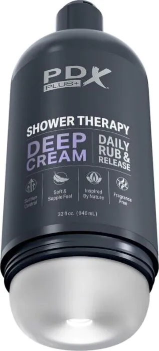 Prazer discreto e sem compromissos. O masturbador PDX PLUS+ Shower Therapy combina um design que imita uma garrafa de champô com um túnel intrincado para máxima estimulação. Fabricado em materiais de qualidade, é compatível com uma bala vibratória para uma experiência ainda mais intensa.
