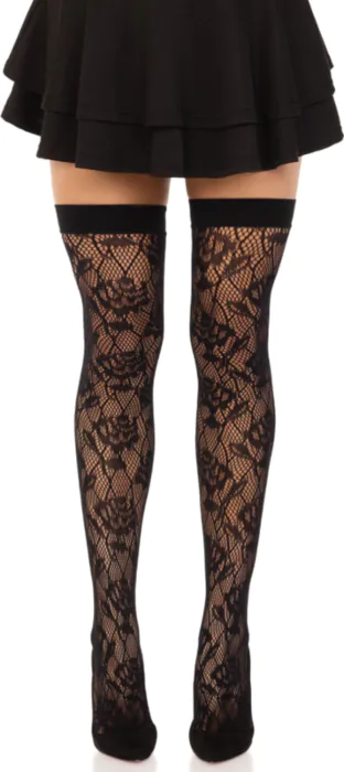 As medias até a coxa de Leg Avenue são a escolha ideal para quem procura adicionar um toque de sensualidade e charme ao seu look. Com um delicado estampado de rosas, são perfeitas para ocasiões especiais.