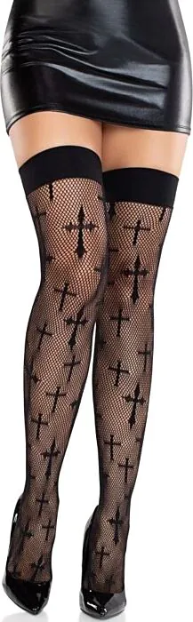 Medias Leg Avenue Worship Me Cross Net Thigh Highs