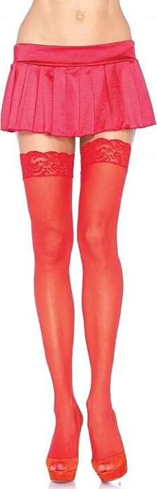Estas meias vermelhas com encaje superior oferecem uma dose extra de elegância e sensualidade. Perfeitas para combinar com ligas ou usar sozinhas, são uma adição versátil ao seu guarda-roupa.