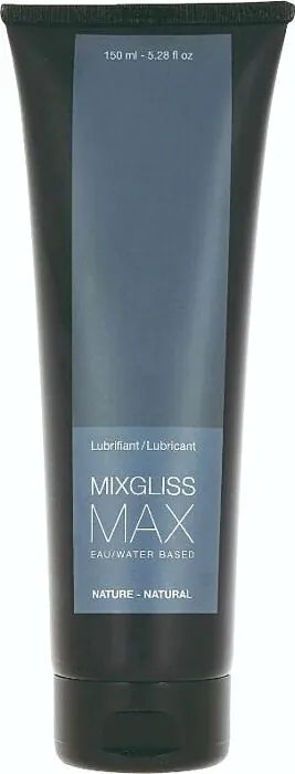 Mixgliss Max é um lubrificante de base água com alta lubrificação, indicado para uso anal e vaginal. Compatível com preservativos e brinquedos.