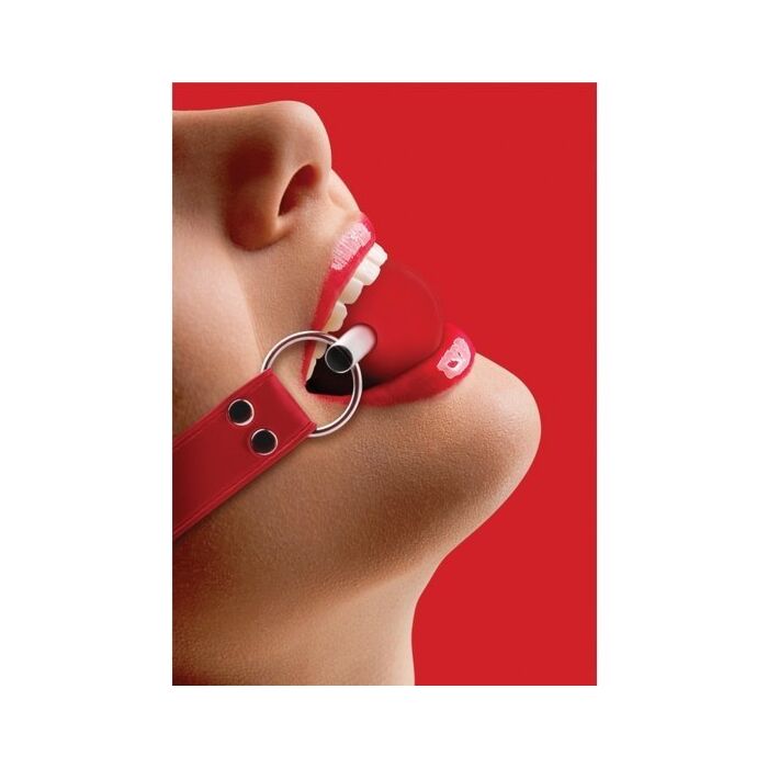 Ouch bola mordaza con cintas de cuero rojo