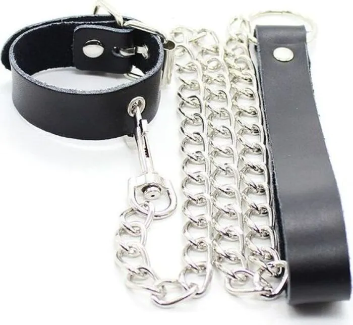 Descobre o prazer do bondage com o collar para pene da Ohmama Fetish. Com correa ajustável e cadeia metálica, é indicado para quem quer explorar novas sensações.