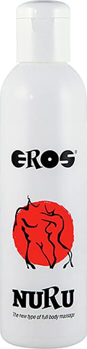 O EROS Nuru é um produto concebido para massagens de corpo inteiro que facilita o deslizamento dos corpos, permitindo um contacto contínuo e fluido entre parceiros. É rico em minerais, sem aroma e incolor, e foi pensado para aplicar sobre a pele previamente humedecida com água — é essa combinação que cria o efeito escorregadio característico do Nuru.