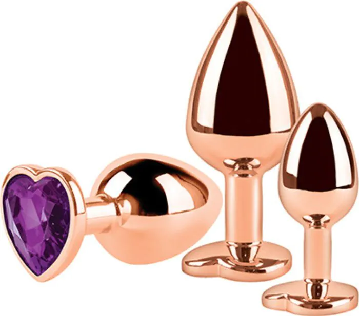 Pack de 3 plugs anais em metal (bronze brilhante) pensados para uma introdução gradual à penetração anal. Cada peça mantém o mesmo perfil cónico e superfície lisa, mudando apenas o tamanho para que ganhes confiança passo a passo. A base plana com peça de joalharia em forma de coração garante um agarre seguro. Compatível com lubrificantes de água e silicone e apto para jogo de temperatura.