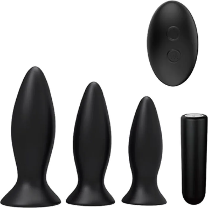 Aventure-se na penetração anal gradual com este pack de três plugs de diferentes tamanhos e uma balita vibradora. Ideal para principiantes que desejam explorar a sua sexualidade de forma segura e confortável.