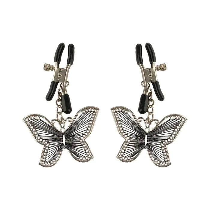 Imagina a combinação perfeita entre beleza e prazer. Estas pinças são concebidas com umas bonitas borboletas decorativas que acrescentam um toque de sensualidade às tuas experiências íntimas. Fabricadas com metal de alta qualidade e revestidas de borracha suave, garantem conforto e segurança durante a sua utilização.