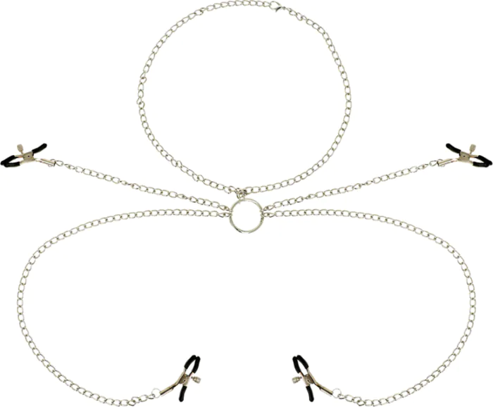 Estimulação intensa com quatro pinzas de pezões metálicas, criadas para prazer e controle. O material em metal sem níquel oferece segurança e é fácil de limpar, enquanto as cadeias conectadas provocam uma sensação de ligação e prazer partilhado.