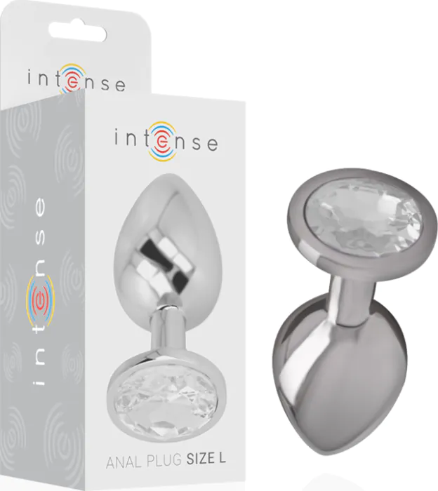 Glamour e prazer intenso com o plug anal INTENSE, decorado com uma joia de diamante. Fabricado em metal bodysafe, este plug oferece uma sensação firme e excitante, com 9 cm de comprimento e 4 cm de diâmetro para uma estimulação anal confortável e elegante.