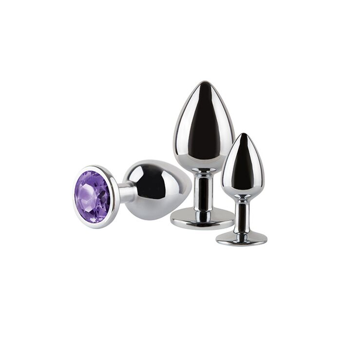 Este é um pack de 3 plugs concebidos para estimulação anal e para quem procura começar a experimentar penetração de forma gradual. Feitos em metal prateado, têm ponta cónica que facilita a inserção e superfície lisa que reduz o atrito ao entrar. A base é plana, segura para manipular, e acabada com uma peça circular tipo joia que ajuda na pega e dá um acabamento elegante.