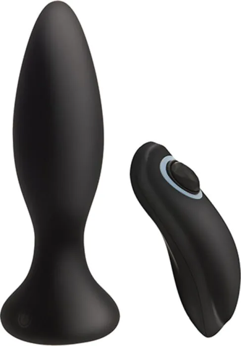 Plug anal pequeno em silicone médico, com 10 modos de vibração e controlo remoto. Recarregável por USB e totalmente submersível, tem tacto muito suave e motor compacto de grande intensidade. Recomendado para quem quer começar na penetração anal com conforto e discrição; não é indicado para quem procura peças maiores ou nem sempre quer usar controle.