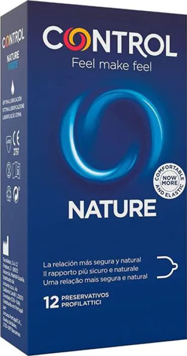 Os preservativos CONTROL Nature oferecem uma proteção fiável com lubrificante, confortável para quem procura conforto e segurança. Cada embalagem contém 12 unidades, dermatologicamente testados.