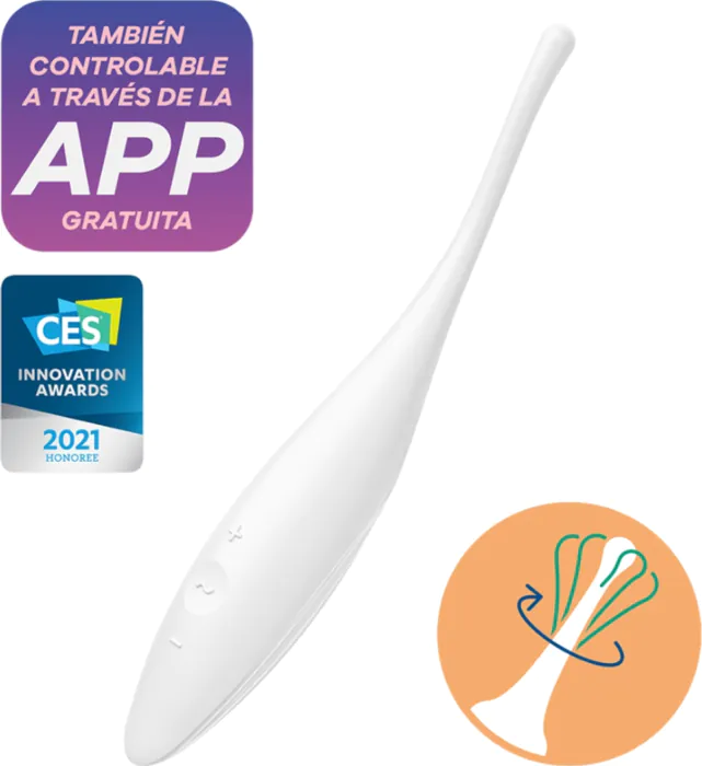 Vibraciones circulares e intensas que estimulam todas as zonas erógenas com precisão. O Satisfyer Twirling Joy combina 40 combinações vibratorias, 8 programas e 5 intensidades, tudo controlado pelo painel ou pela aplicação Satisfyer Connect. A sua construção em silicone proporciona uma experiência confortável e segura.